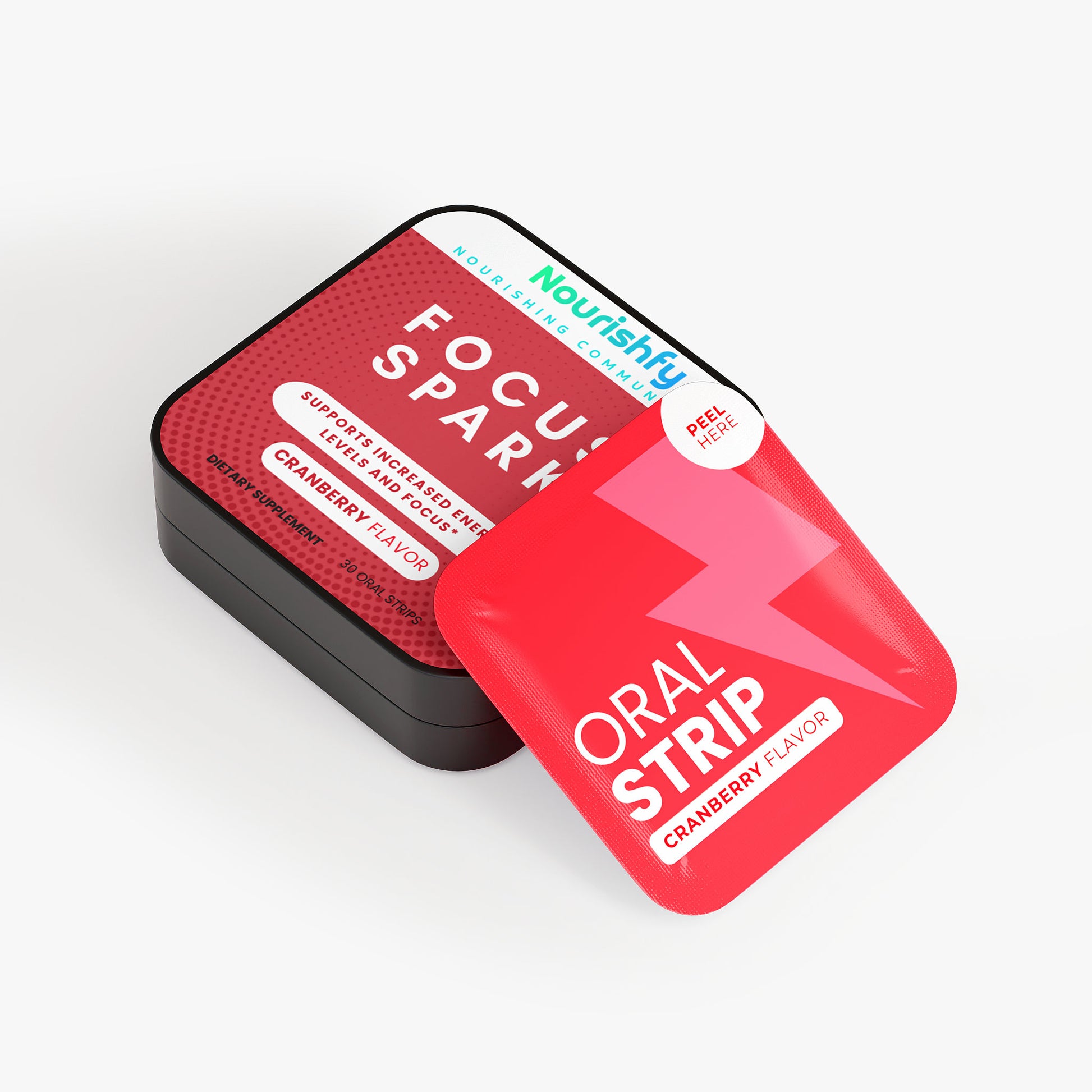 Focus Spark™ deliver fast-acting, jitter-free energy in one sleek, dissolvable strip—no water, no sugar, no nonsense.